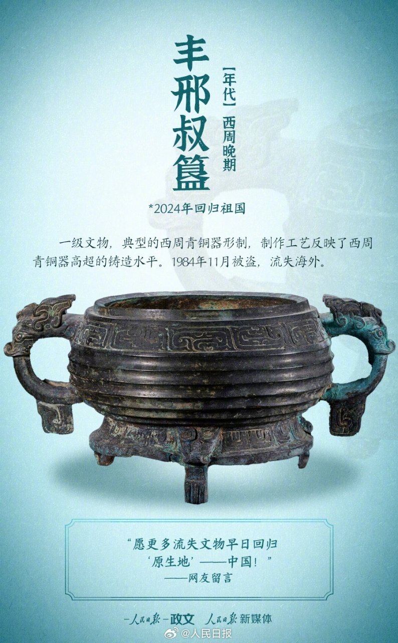 丰邢叔簋、长沙子弹库帛书、圆明园石柱……“十四五”时期,35批次537件/套流失文物艺术品回归祖国。为什么执着于追索流失文物?国宝回家背后,是守护文化根脉、捍卫民族尊严的坚定决心。文物回家的故事仍在继续,期待更多流失国宝踏上归途!
